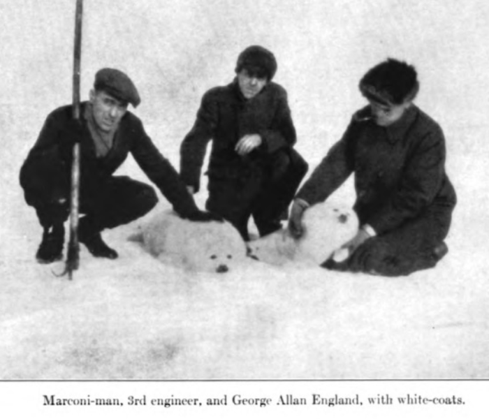 George A. England, Vikings of the Ice: Being the Log of a Tenderfoot on the Great Newfoundland Seal Hunt (London: Hutchinson & Co., 1924), 82-92, 13-142, 230-233, 236, and 239-246. See: https://babel.hathitrust.org/cgi/pt?id=uc1.b4500059&seq=1