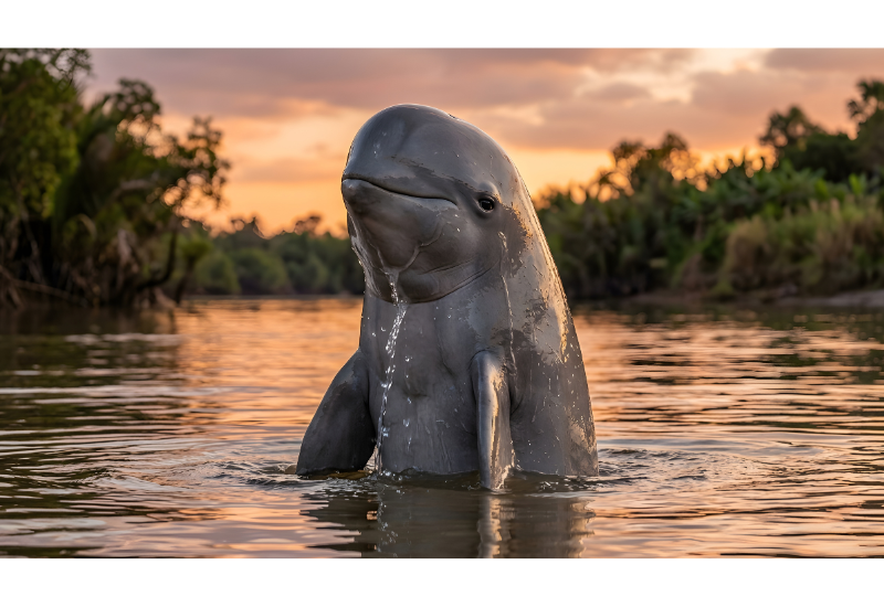 Three living species of Dolphins, respectively inhabiting the rivers and estuaries of India, the Upper Dolphins. Amazon, and the Rio de la Plata, represent two distinct families…. The first of these is the Platanistidæ, including only the Susu (Platanista gangetica) of the Ganges, Indus, and Bramaputra, which ascends those rivers almost to their sources, but never passes out to sea. In common with the next family, the Susu… has eight double-headed ribs and a long beak; its costal cartilages ossify late in life; the petrosal and tympanic bones are connected with the skull mainly by ligament; the temporal fossa is large; all the cervical vertebræ are free; teeth are present in both jaws; and the flippers are short and wide.