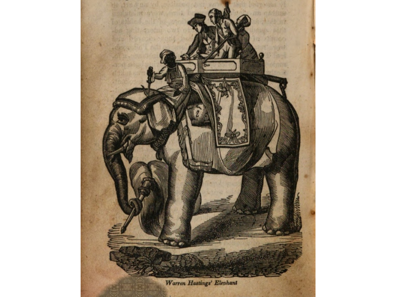 At Vizier Ally’s wedding, in 1795, “the procession was grand beyond conception: it consisted of about twelve hundred elephants, richly caparisoned, drawn up in a regular line, like a regiment of soldiers. About one hundred elephants in the centre had howdahs, or castles covered with silver: in the midst of these appeared the nabob, mounted on an uncommonly large elephant, within a howdah covered with gold, richly set with precious stones.”