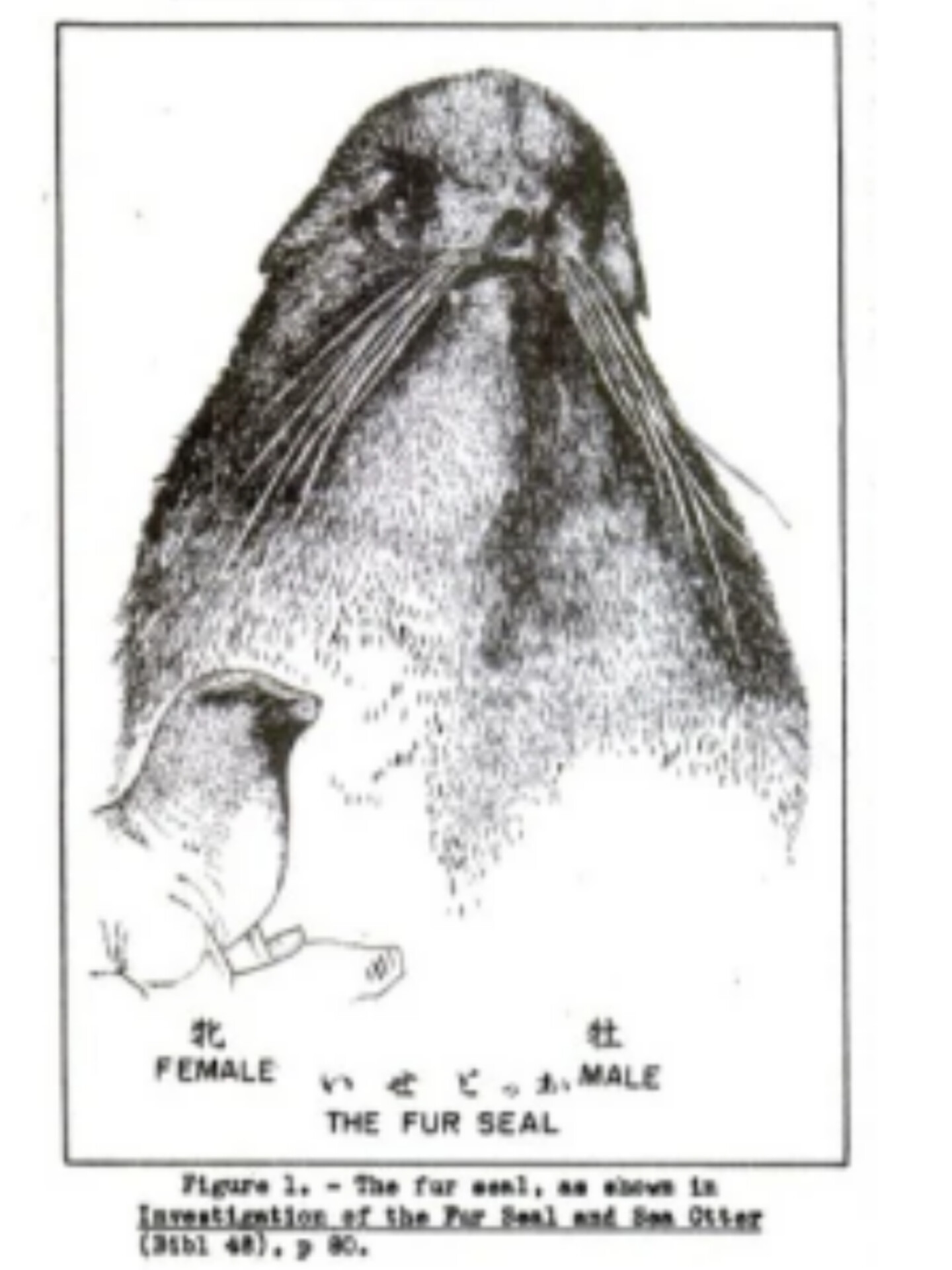 In 1929 a Hokkaido salmon fisherman sent to the Japanese Bureau of Fisheries a numbered metal tag which he found on a seal taken accidentally in his nets off Muroran. The Bureau sent photographs of the tag to the United States Bureau of Fisheries, which verified it as one attached to a seal in the Pribilofs in 1928. In the spring of 1930 Japanese Fisheries officials recovered two more 1928 Pribilof tags taken similarly the preceding season by drift-net fishermen off the east coast of Honshu…. The officials also unearthed reports of 25 more tagged seals taken by poachers off Honshu and Hokkaido between 1928 and 1930. These reports could not be verified further because the tags either had been discarded by the fishermen who did not realize or care about their scientific value, or else had been purposely thrown overboard to destroy incriminating evidence of poaching. The Bureau of Fisheries published these data in 1933 in a very interesting pamphlet, apparently written to justify the Japanese request for a revision of the treaty. Two identical editions were printed simultaneously, one in English, the other in Japanese…, but neither was given any circulation outside Japan, although the English edition could have been issued only for foreign consumption. American authorities apparently knew nothing of this publication until a copy of the English version obtained from the Japanese Bureau of Fisheries was forwarded by Natural Resources Section to the Department of State in Washington 6 June 1946.