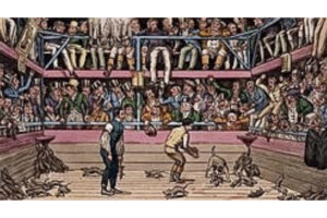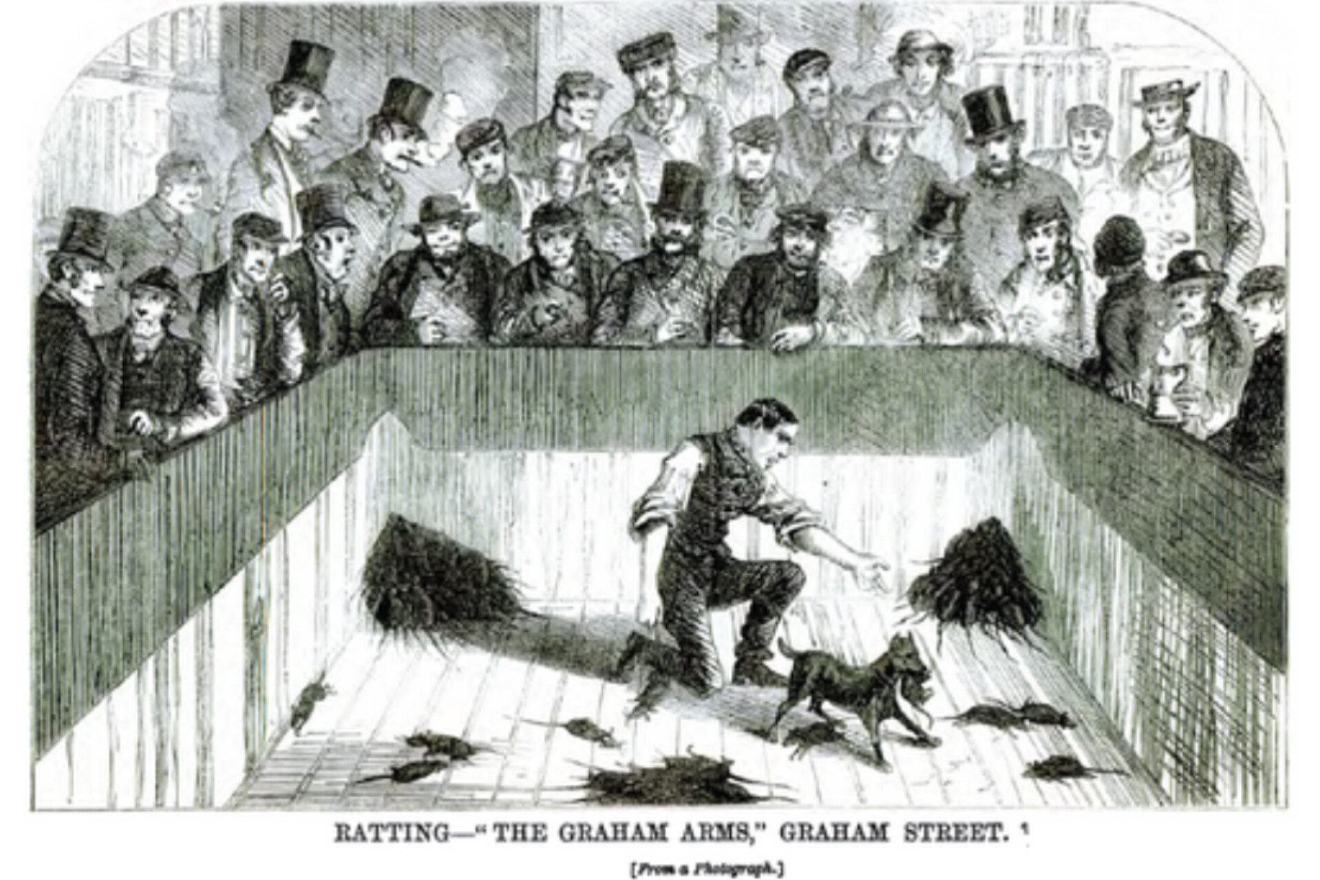 Even Rat-killing, like every other pastime into which an element of bloodthirstiness enters, and the fascination of which is contained in the spirit of the invitation “to go out and kill something,” has proved itself susceptible of degradation. Some brutalised specimens of humanity have not disdained to put themselves on the level of snapping, snarling dogs, in emulation of their inbred rat-killing propensities. Among “men” of this type was a Birmingham character called “Blewey,” who frequently backed himself to kill rats faster than a terrier dog.