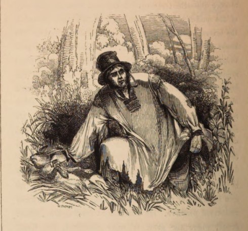 There are two classes of poachers, — the day and the night poacher. The day poacher is usually solitary: night poachers, on the contrary, are gregarious. The solitary poacher, in most instances, displays more stratagem than those who go out in murderous gangs, clearing everything before them, and braving, with a bold and determined front, every danger. The solitary poacher, for instance, perceives that a long drain or a small rivulet runs in a certain direction, separating field from field. The communication by the highway is over a bridge; and the hares, during the time of feeding, can only cross from one part to the other by the means of this bridge. Therefore the poacher sets his net across the bridge, and waits in ambush. In the course of a short time, probably, a hare or two are caught in the net, when he is immediately at hand, and secures them.